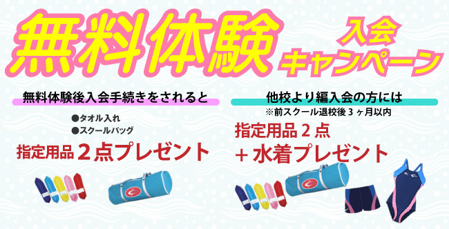 | 当日お持ちいただく持ち物 | お持ちの水着・帽子・バスタオル (成人女性の場合、ワンピース水着) |