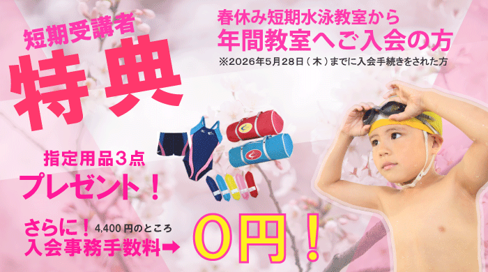 春休み短期水泳教室を下記の日程で今年も開催いたします。